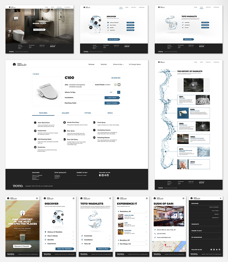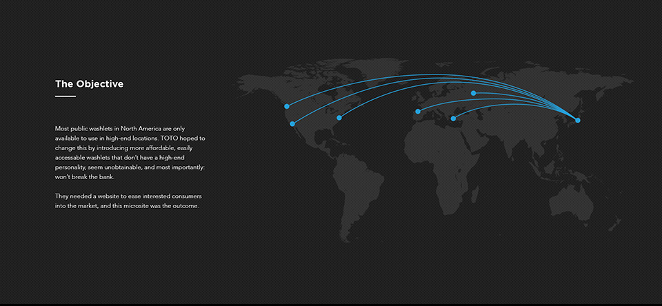 This website was created for Toto Brazil on behalf of Applied Imagination. I managed the aesthetic and creative direction, while adhering to strict guidelines demanded by Toto’s existing brand image. No physical guidelines were provided – all were based off brand observation and judgement.